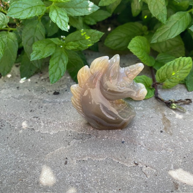 OverzichtDeze lieflijke eenhoorn carvings zijn zachter voor de portemonnee dan de grotere carvings die we normaal hebben. Een fijne manier om de energie van de eenhoorns dichterbij te halen. De tuinfoto's tonen de eenhoorn als er heerljk zon is. De foto naast de lineaal geeft meer beeld van hoe deze binnen zonder al te veel licht oogt.