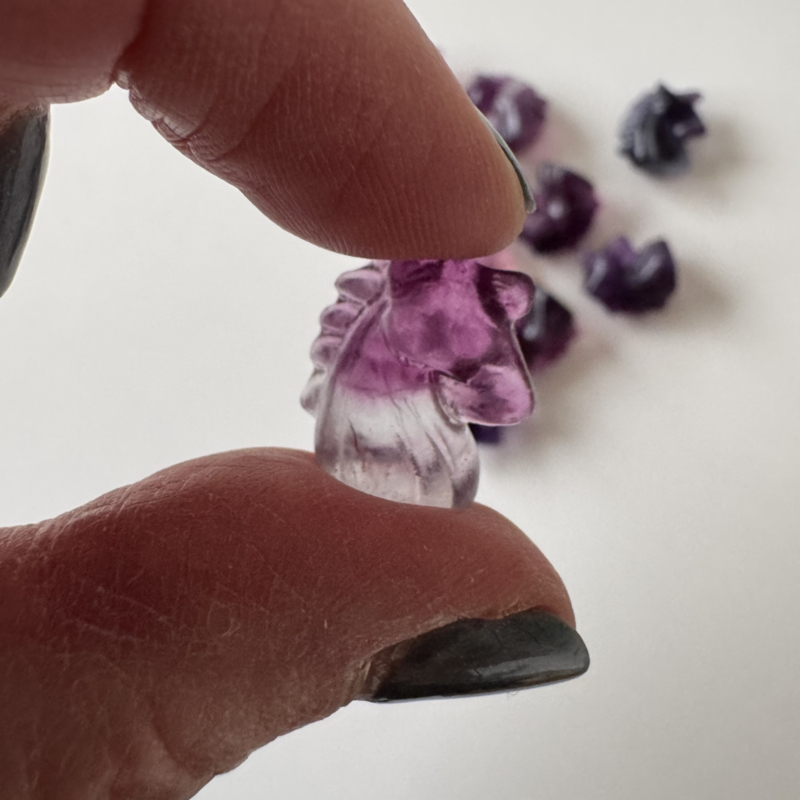 Tiny eenhoorntje van fluoriet - donker violet/paars
